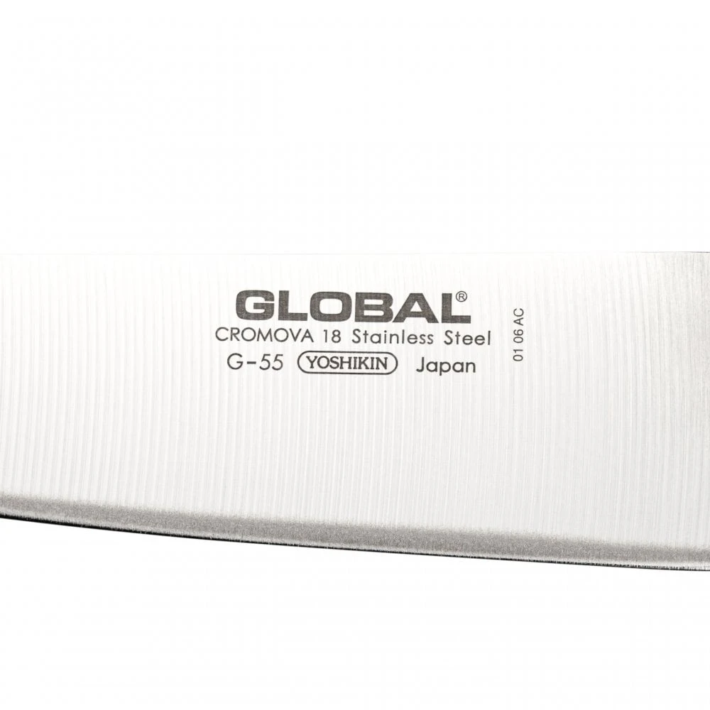 The G-16 and G-17 are the two biggest brothers of the Global cook’s/chef’s line at 24cm and 27cm respectively. These are typical chef’s knives, good for any use in the kitchen. The size of these knives means that they are more suited for professional chefs in working kitchens. For home use we would recommend anything from the G-2 and downwards. Aside from the blade length, these knives have bigger more cylindrical handles and a more pronounced bolster to offer added protection.