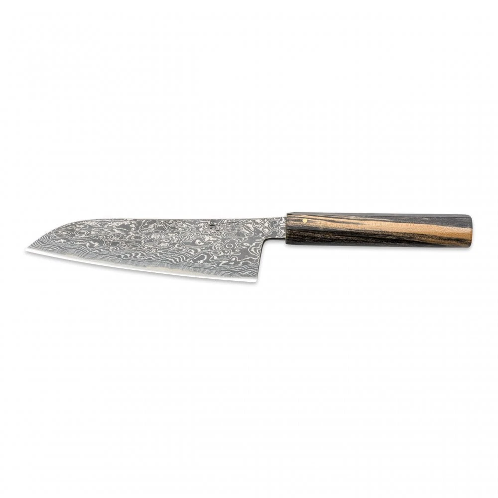 Hinoura Tsukasa one of the most famous blacksmiths in Japan, is a 3rd generation blacksmith from Niigata. Mr Hinoura creates immaculate knives with recognisable patterns in the Damascus layer. Mr Hinoura’s knives are made to be perfect, with no distortions or gaps. Mr Hinoura uses very traditional techniques, from forging to hand sharpening, making one of his knives takes a tremendous amount of time and his knives are hard to get hold of. His knives are highly sought after in Japan and Europe.
