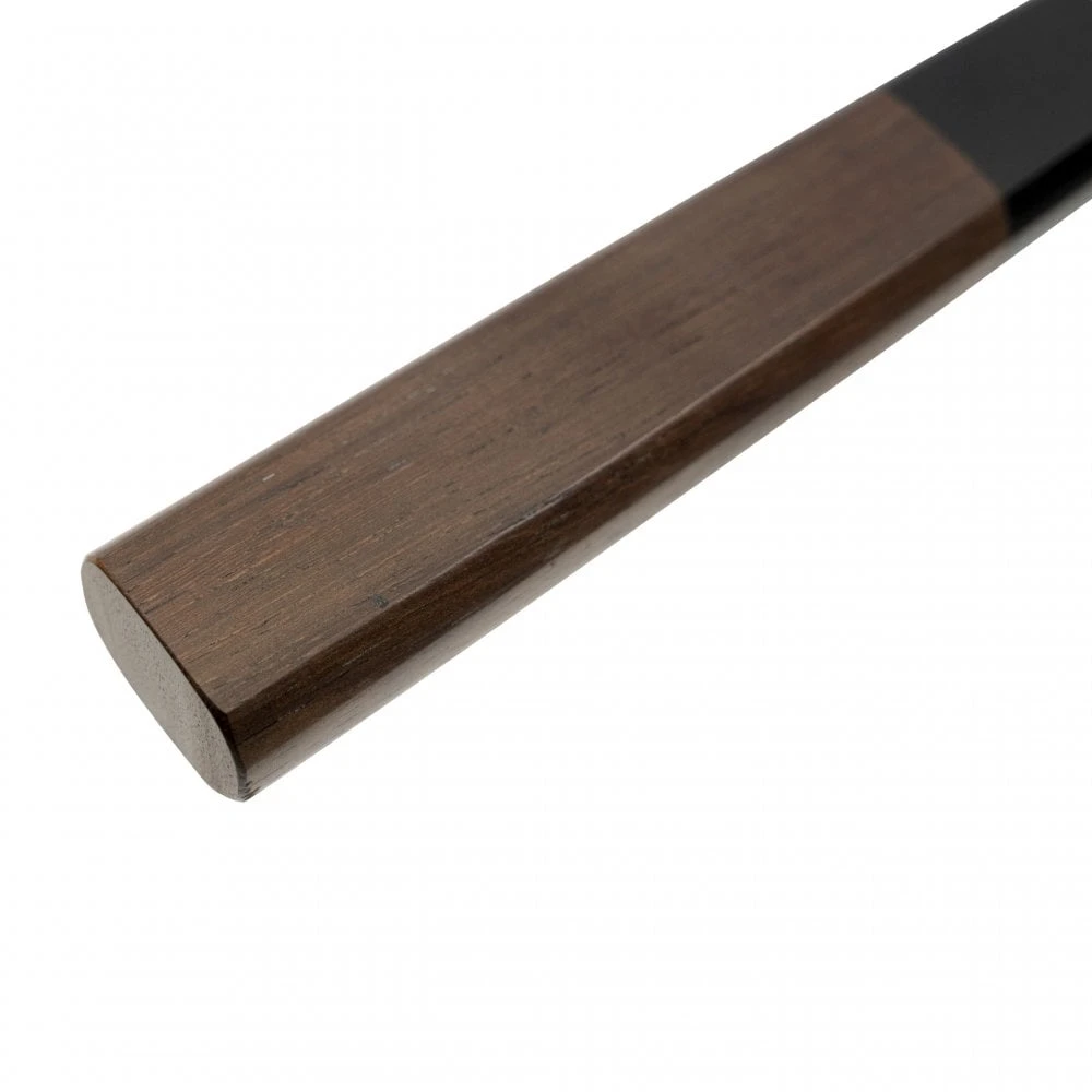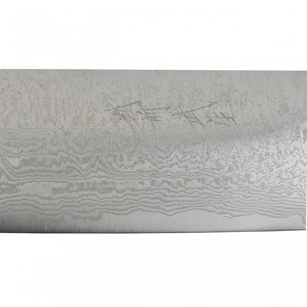 Shiro Kamo knives are produced in Takefu Knife Village by Hand and are some of the finest knives coming out from the collective. Kamo works with a variety of materials; These knives have a powdered steel SG-2 core with a very high hardness rating, SG-2 being one of the most advanced stainless steels available in knife manufacturing. The core steel is sandwhiched between layers of stainelss steel with a damascus pattern. The knife features a deep reddish brown handle made from Sandalwood. These knives are good value for those wanting a knife made from powdered steel.
